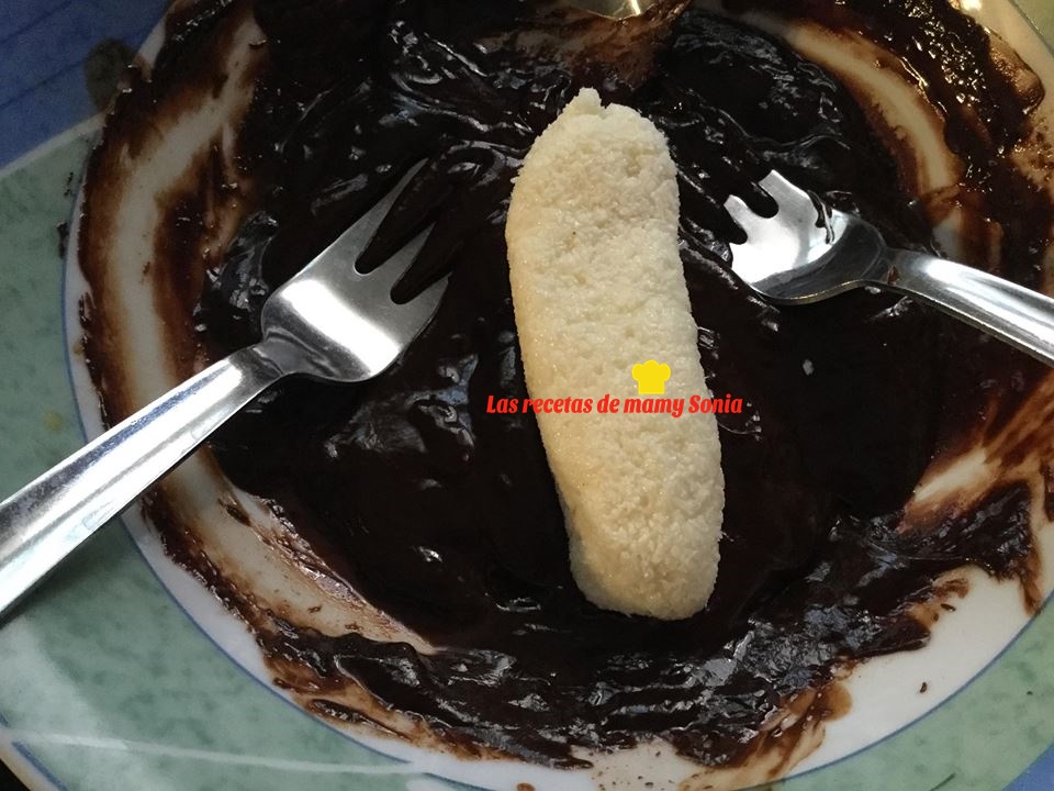 Derretimos los chocolates y bañamos( yo le he hecho un rallado con un tenedor)