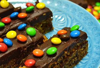 - Dejamos enfriar. Cuando esté completamente frío, lo esparcimos sobre la superficie de las barritas. Dejamos que el chocolate vuelva a endurecerse un poquito y cortamos las barritas. Decoramos con unos cuantos M&M's.