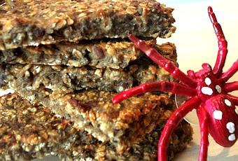 Nos quedará una pasta bastante manejable pero bien unida, que podremos extender sobre un papel de horno formando un rectángulo de unos 3-4mm de espesor. Una vez extendida le hacemos los cortes con un cuchillo, para que luego sea mucho más fácil separar cada barrita, yo he hecho 8 unidades, pero el tamaño un poco a vuestro criterio.Lo horneamos a 180ºC unos 25min, hasta que se doren y los bordes queden crujientes.