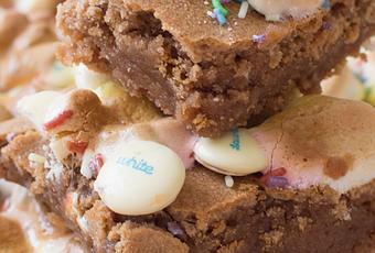 Y el otro uso que le hemos dado ha sido la receta que os traigo hoy. Esta inspirada en una receta que me encontré en pinterest hace meses y que tenía guardada en favoritos, es de un blog americano, Sprinkle some sugar. Es una receta que está a medio camino entre un brownie y unas cookies. Es perfecta para una fiesta infantil, aunque los más mayores tampoco les pondrán pegas.