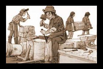 Con el dibujo realizado a escala 1:1 podremos tomar referencias y medidas que trazaremos en el sillar. A partir de estas líneas, rectas y circulares, iremos retirando la piedra sobrante con cuidado de no rebasar las medidas, ayudándonos de escuadra, falsa escuadra y plantillas.
