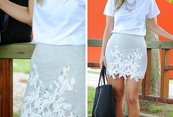 ¡Hola amores!¡Qué rápido se me esta pasando esta semana! Como me gusta que estemos en verano y poder ir sin chaquetas para lucir bien las prendas. Y como siempre menos es más, hoy look con prendas súper básicas como esta camiseta blanca y esta falda con encaje en la parte delantera que dependiendo de los complementos que utilicemos nos puede servir tanto para un look más casual como más arreglado.¿COn qué os pondríais esta falda?
