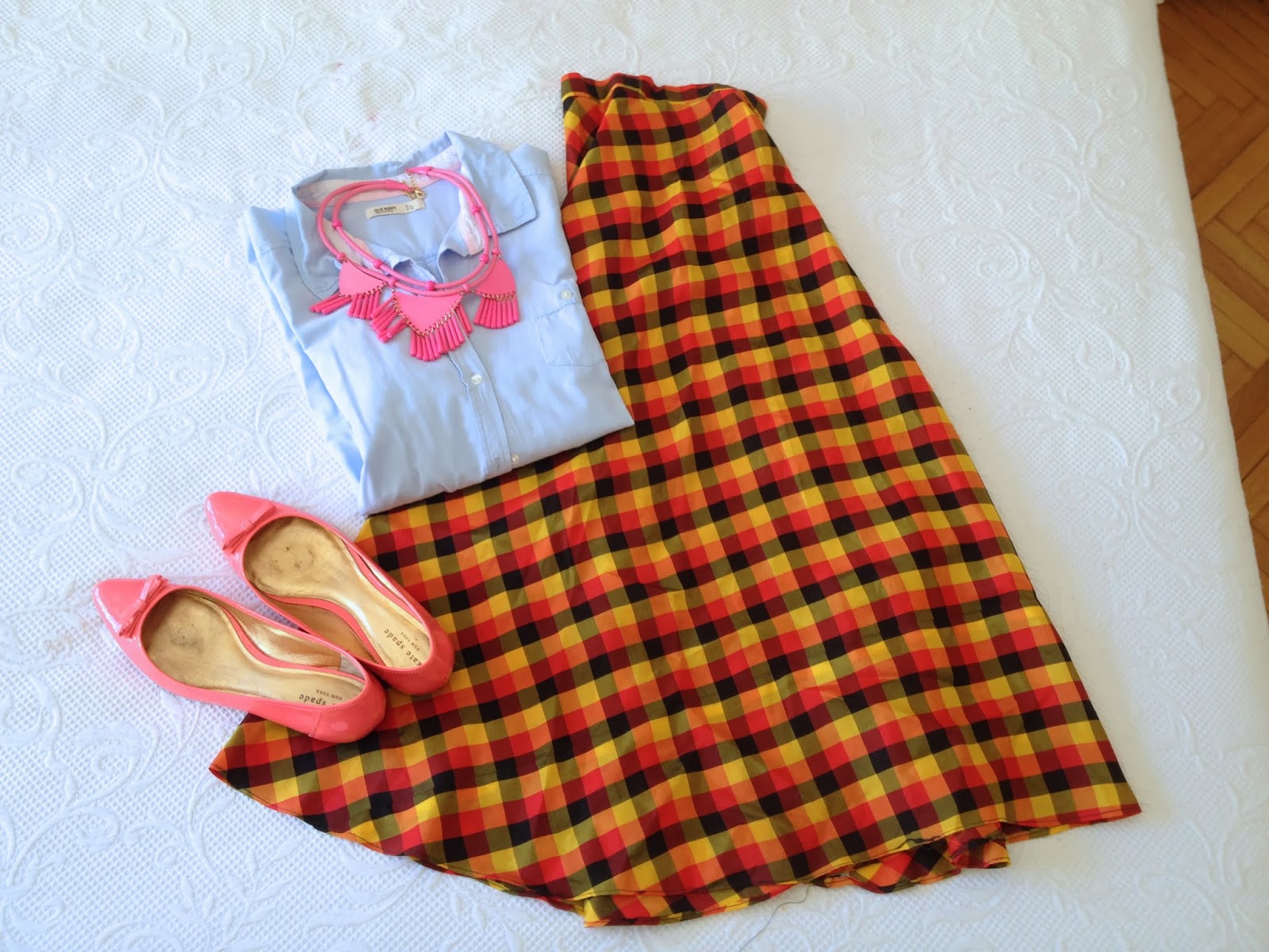 Camisa Old Navy, falda vintage, collar Lithium, chatas Kate Spade