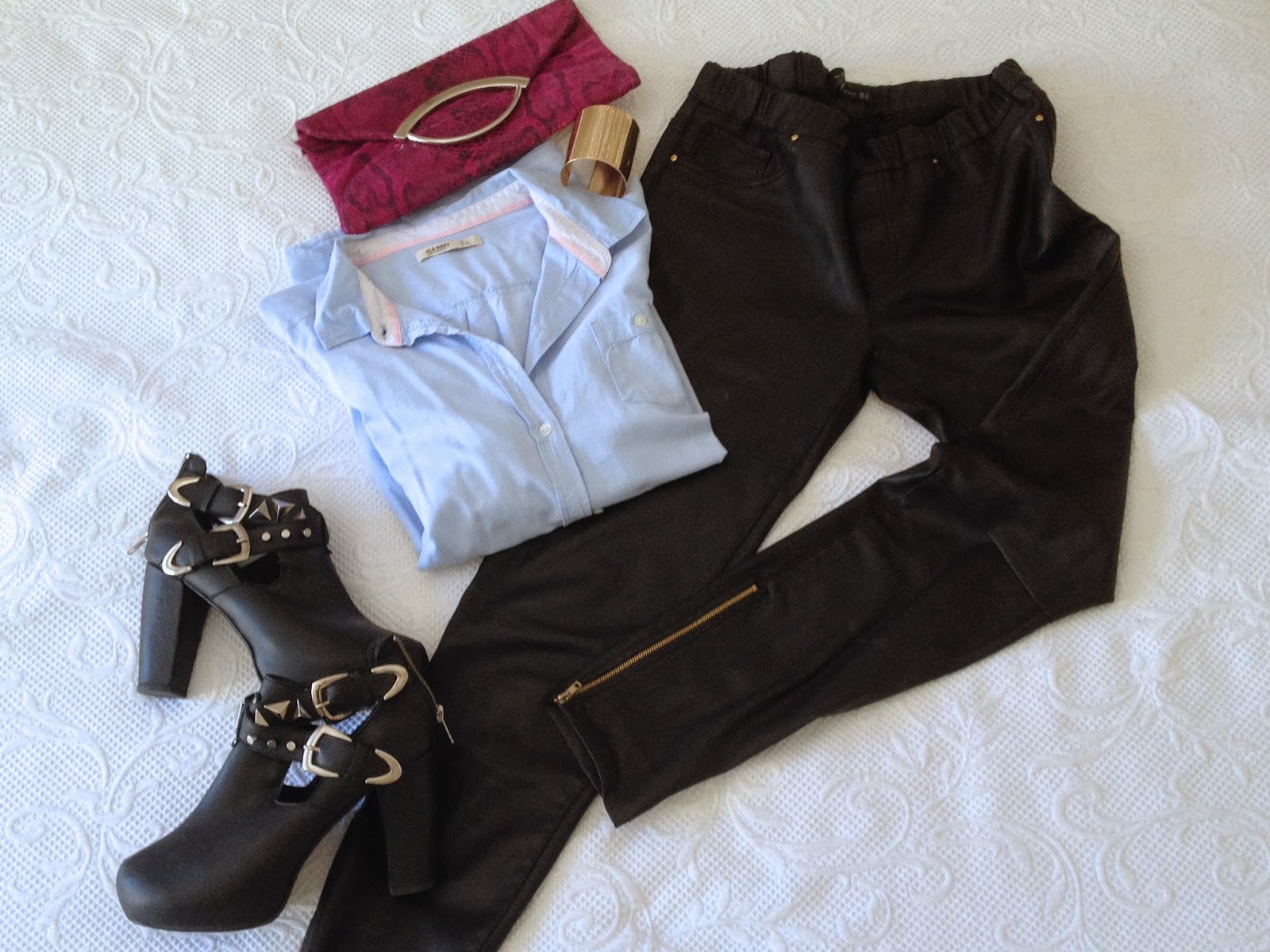 Y directo desde mi cuarto, tres opciones: con mi (unica) falda midi, con jeans y con pantalones simil cuero. Me gusta mezclar celeste con rosa!