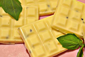 Mini tabletas de chocolate blanco, albahaca y cítricos