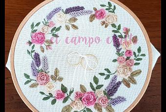 Hola. Ya estamos en pleno agosto, la mitad de vosotros estaréis de vacaciones, aprovechando el calorcito para ir a la playa. Mi post de hoy no es de vacaciones, pero sí de tema veraniego: bastidor porta alianzas para la boda de unos amigos, bordado con rosas y flores de lavanda al estilo shabby. He usado una tela de lino en color crudo como base, con un sencillo dobladillo de vainica ciega para que no se deshilache. El bordado está hecho con lanas de la marca The Gentle Art , son perfectas para bordados con relieve y de estilo rústico o shabby, por los tonos suaves degradados y porque la calidad es excelente. No hago publicidad porque me paguen, ni nada parecido, es que realmente me parece un buen producto y lo recomiendo. Y una vez acabada la boda se puede usar el bastidor para adornar, queda precioso colgado en la pared. A los novios les encantó, y yo me lo he pasado muy bien bordándolo, creo que es un detalle muy romántico. Besitos.