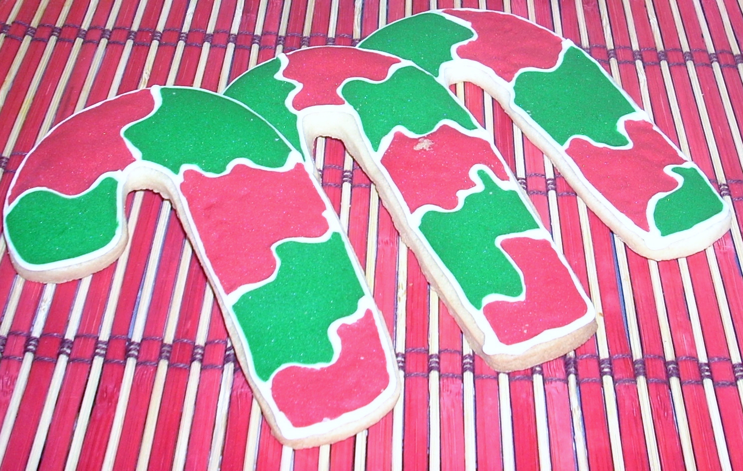 Cuando era niña y vivía en mi mundo de fantasía "Aun tengo bastante..." veía las típicas películas de navidad americanas, como solo en casa... y otras más, en ellas siempre aparecían estos bastoncitos, yo una golosa, se me hacia la boca agua!!!El año pasado ya los hice pero no los llegué a publicar, este año os los traigo de verde y rojo, no sabia si me iban a gustar con esta combinación pues me quedé sin colorante rojo, y la verdad es que no me desagradan.Para la gente inexperta como yo en el mundo de las galletas, os vendría muy bien el consejo que me dieron "Mensaje en una galleta" ahora siempre que decoro, una vez secas, si veo que se están haciendo blandas las meto 1 hora en el horno a temperatura mínima de 50º, eso hace que las galletas estén igual de crujientes que cuando empezamos a pintarlasEspero que os gusten, un beso y de nuevo...FELIZ NAVIDAD