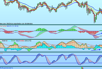 En el gráfico diario de Indra, vemos más claramente los soportes y las resistencias. El soporte roto de los 11.60, un soporte intermedio situado en 10.52 que hoy se está empeñando en testear y que de romper la llevaría de cabeza a los 9.95. Cuando llegue allí habrá que evaluar si se para o sigue más abajo. El Konkorde es un poema, nadie quiere comprar Indra, el MACD girado a la baja y pasando de cero, el estocástico por debajo de 20. A corto plazo bajista, muy bajista, aunque en el medio plazo deberíamos ponerla en cuarentena, puede tener reacciones alcistas interesantes, no hay que olvidar que es una gran empresa. Suerte y buenas decisiones.