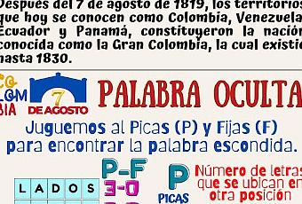 Conmemora la Batalla de Boyacá jugando a la Palabra Oculta. Si te gusta jugar al Picas y Fijas, juguemos a descubrir la palabra escondida.