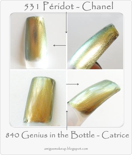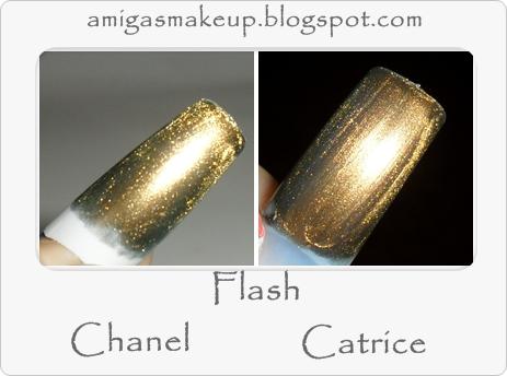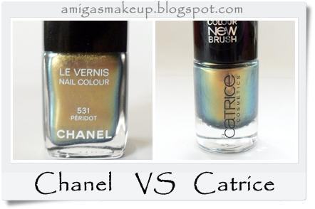 ColorA simple vista ambos son muy parecidos, aunque el de Catrice degrada a más colores y el de chanel es oro viejo más fino.