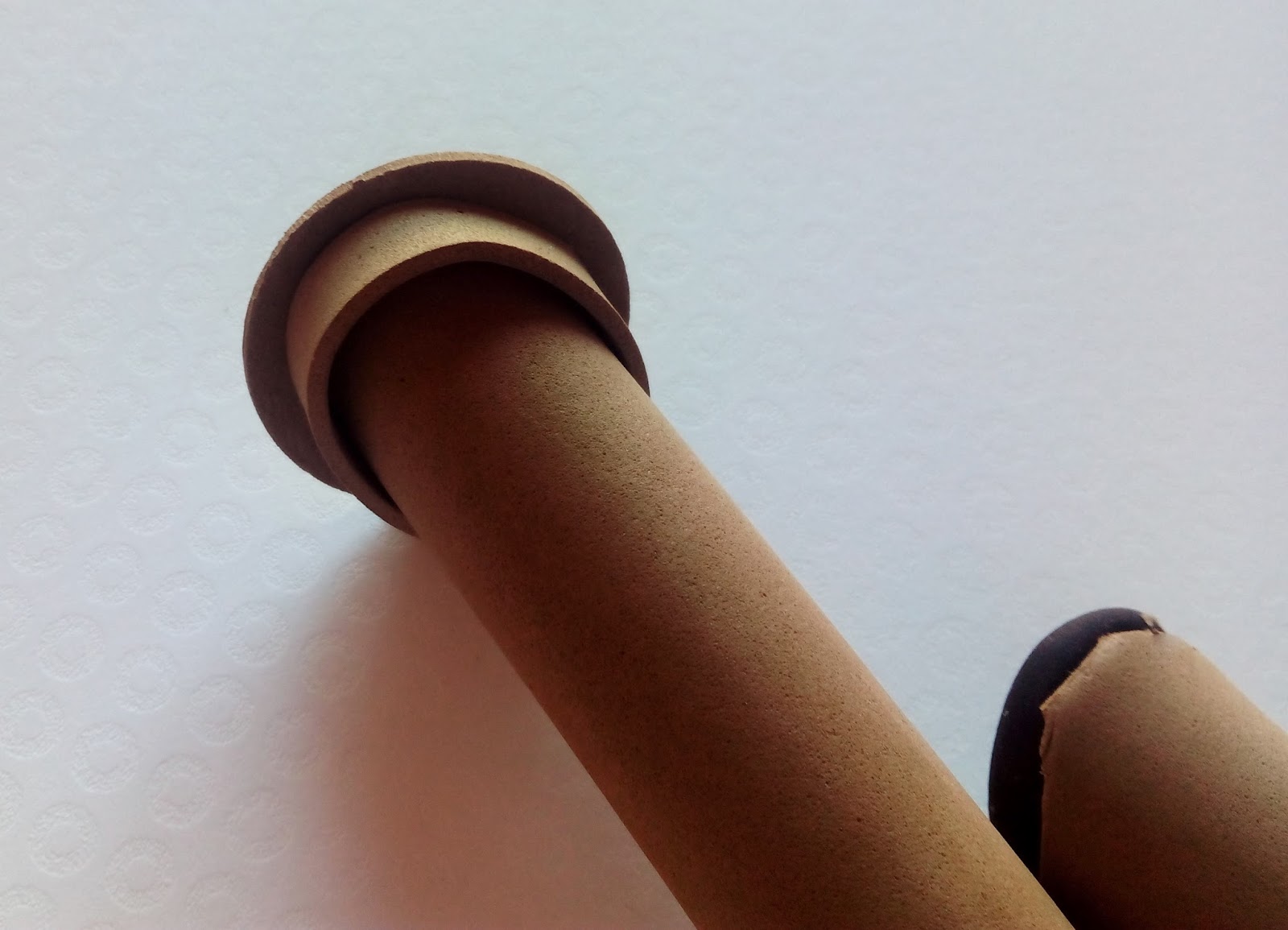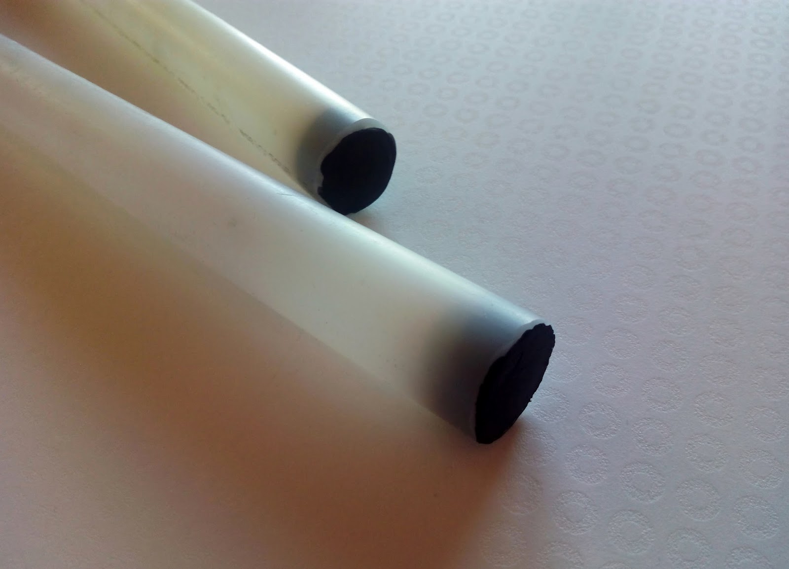 4. También se forro con goma eva en color marrón los tubos y colocamos masilla, en sus extremos, para una mayor superficie de agarre.