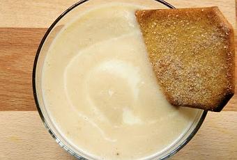 Pelamos, partimos la fruta y la echamos en el vaso de la batidora. Partimos unas cuantas galletas ( pueden ser de cualquier tipo!) y las añadimos. Echamos leche fría según queramos el batido más o menos espeso,y a continuación añadimos la vainilla en polvo. Batimos bien,echamos en el vaso,y ponemos un poco de leche condensada por encima. Podemos decorar el batido con almendra picada,trocitos de galleta,nata montada,canela.... riquísimo! ♥