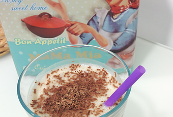 Y por fin cuando llegue a la cocina y vi el vaso con su pajita y decorada con las virutas de chocolate me hizo mucha gracia, menudo cocinillas esta hecho!. Y por supuesto no averigue de que se trataba hasta que lo pobre y es que el sabor inconfundible del Plátano me hizo averiguar de que se trataba a la primera.