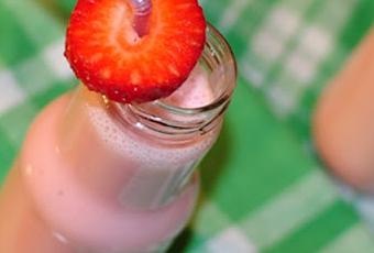 Triturar con una batidora el yogur con las fresas, y algún endulzante si lo queremos mas dulce. Ir añadiendo leche en un hilito mientras seguimos batiendo hasta que el batido esté con el espesor deseado.