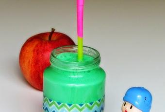 - Batimos a máxima potencia el yogur con una puntita de un palillo de colorante verde o el que más os guste. El yogur quedará con pompitas por arriba.