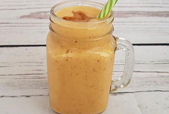 - Sirve el smoothie en vasos con una cucharadita de crema de cacahuetes por encima.