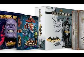 La imagen que veis arriba esta sacada de la página web de There will be Games, que a su vez esta sacada de la web de la feria comercial GAMA 2019 para la parte de USAopoly. Parece que esta anunciado el lanzamiento de Batman Talisman o al menos, va a ser presentado junto a otros juegos que no son de la licencia Talisman, que son los que veis en la imagen (De hecho, dos de ellos, el de Capitán Marvel y el de Harry Potter ya han sido presentados en otros eventos).
