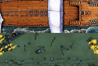 - Y una versión adicional con batalla y fuego en ambos lados: Playa y barco
