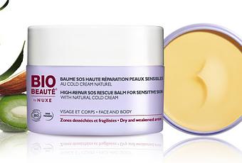 Baume SOS Haute Réparation Peaux Sensibles, es el nuevo concentrado de Bio-Beauté® by Nuxe que llega al mismo corazón de la epidermis gracias a su textura óleo-cera, una textura inédita que al contacto con la piel se tranforma en un aceite de tratamiento, actuando en dos tiempos y consiguiendo una eficacia que ha sido probada en los 5 principales signos presentes en las pieles fragilizadas.