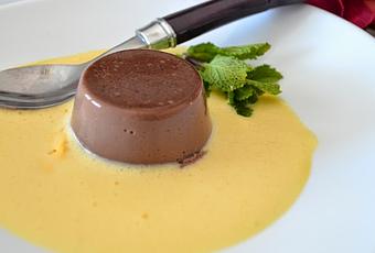 Ponemos el batido de chocolate a calentar en una cazuela, sin que hierva. Calentar el agua y disolver el sobre de café, añadir al batido de choco. Poner las hojas de gelatina en un bol con agua fría para que se hidraten. Pasados cinco minutos las sacamos y escurrimos, las ponemos con el batido ya caliente para que se deshagan, remover bien. Añadir la leche condensada y mezclar. Por último semi montar la nata y mezclar con el batido, con unas varillas. Verter la mezcla en moldes de silicona mejor que sean lisos para poder desmoldar bien. Guardar en el frigorífico un mínimo de 4 horas hasta que cuaje. Para la presentación poner dos cucharadas de helado de vainilla o nata y dejar que se deshaga, colocar encima un bavarois y una ramita de menta. Servir frío.