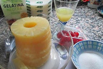 Con un poco del caldo de la lata de piña disolveremos las hojas de gelatina, previamente remojadas en agua fría, estando dicho caldo caliente.