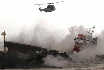 Lógicamente no existen imágenes del hundimiento del Titanic, por eso de que entonces no se estilaba aún la fotografía digital, a diferencia de lo que sucede actualmente en la que práctiucamente cualquier evento se registra en imágenes digitales en todas las partes del mundo. Este carguero español, con el p´ractico del puerto a bordo, sufrió una avería eléctrica quedando a merced del temporal que lo arrastró hacia unas rocas, donde se partió en dos. El helicóptero que lo sobrevuela rescató a sus tripulantes con un solo herido de carácter leve, lo que resta importancia al accidente, del que nos quedan las bellas e impactantes imágenes de la violencia desatada por el oleaje.