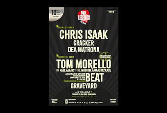 Este año en el Bilbao Arena dentro del BBK Legends Bilbao tendremos dos jornadas de muy buena música. La jornada del 26/6 será el turno de Chris Isaak, este emblemático artista viene a España dentro de su gira por Europa recordando sus mejores temas, se une a este día Cracker quienes vuelven a España y que pasarán por el festival; completan Dea Matrona, un joven dúo irlandés que está dando que hablar a nivel internacional. La jornada del 26/7 será el turno de Tom Morello, una de las figuras musicales, miembro de proyectos como Rage Against he Machine o de Audioslave, ese mismo día tocará BEAT, el supergrupo formado por los legendarios exmiembros de King Crimson, Adrian Belew y Tony Levin, junto a Steve Vai y el batería de Tool, Danny Carey. La banda nace con el propósito de ofrecer una reinterpretación creativa y altamente rigurosa de los tres álbumes que definieron la etapa más innovadora de King Crimson en los años 80: Discipline, Beat y Three of a Perfect Pair. Concebido bajo el concepto Performing the Music of 80s King Crimson. Completa el cartel Graveyard, la banda sueca formada en Gotemburgo en 2006 y considerada una de las propuestas más sólidas del rock europeo actual.