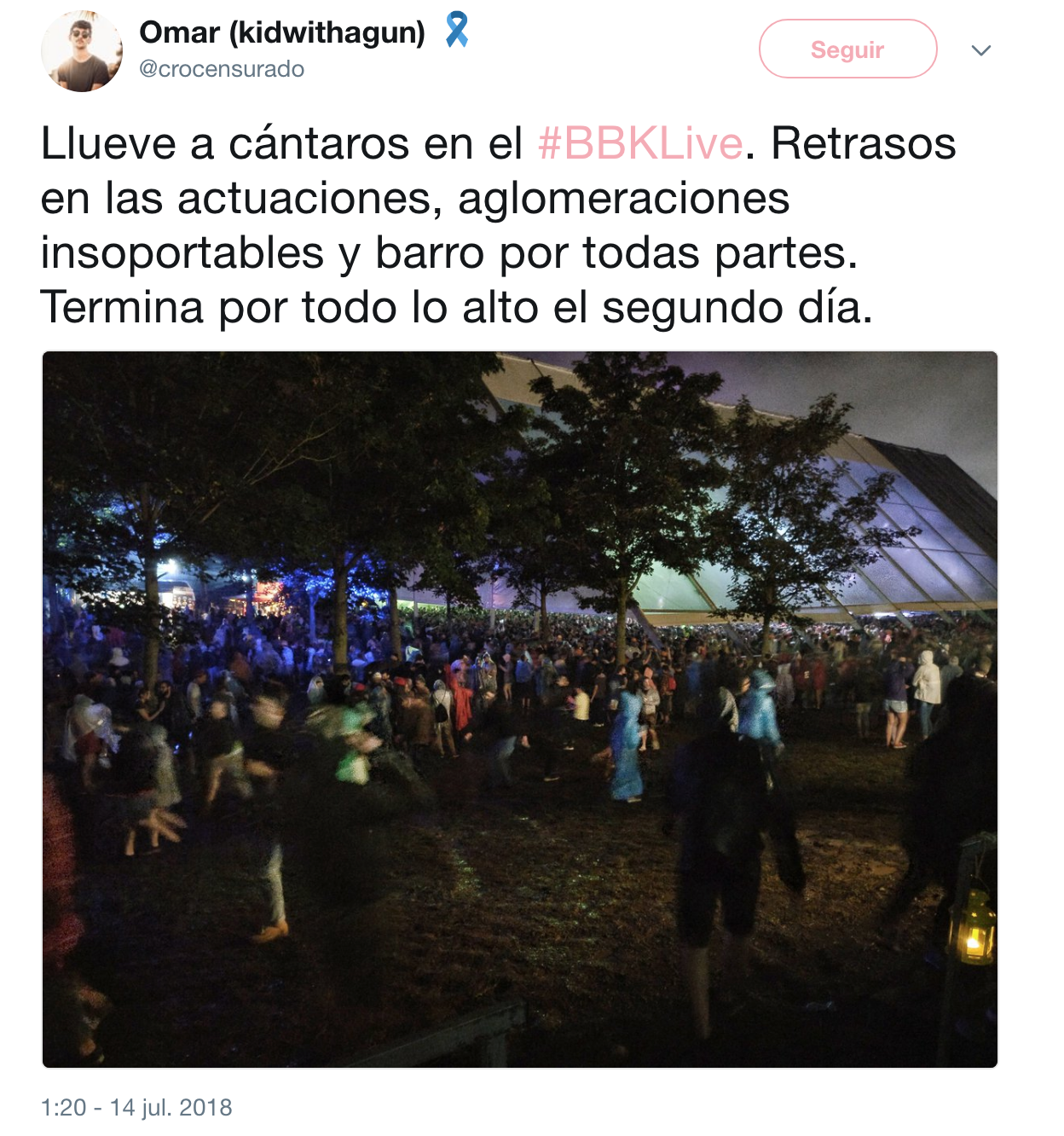 En este momento, no está todo perdido para el Mad, es solo una alerta. Las redes sociales se inundan de tweets continuos a favor y en contra de uno y otro. Con respecto al BBK hay opiniones de las condiciones laborales de los profesionales del evento... el Mad Cool acapara la atención con la falta de seguridad en el recinto.