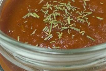 1 cebolla mediana picadita1 vaso de salsa de tomate frito2 cucharadas de sirope de agave1 cucharada de vinagre de módena1 cucharadita de romero seco1 cucharadita de aceite de oliva virgen