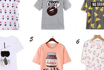 1- Camiseta helados AQUÍ, 2- Camiseta labios AQUÍ, 3- Camiseta pizza AQUÍ, 4- Camiseta pelo AQUÍ, 5- Camiseta nutella AQUÍ, 6- Camiseta helados AQUÍ