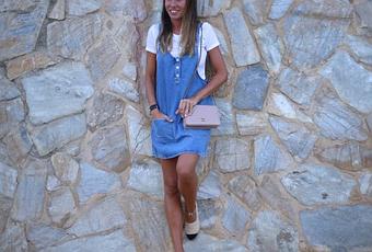 Este peto vaquero creo que ha sido un must have que seguro que la mayoría tenéis. Yo me lo pongo con un crop top blanco debajo y el bikini para bajar a la playa. ¡Por cierto! Me he traído también mis pañuelos bandana para protegerme del sol y quedan genial atados en el pelo como lo llevo yo hoy o con un lazo y con coleta.
