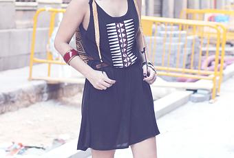 Vestido/Dress:Zara TRF, Botines/Booties:Valensi vía Sarenza, Pulseras/Bracelets:Mango, Romwe, Malababa, Mochila/Backpack:Las Dalias Ibiza (Ibiza Flea Market), Collar/Necklace:Vintage