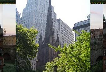 You can't miss it if you go to New York. It is one of my favourites places there. Surrounded by skycrapers, this little -well, at least in comparison with the other buildings, its tower is 85 meters high- neogothic jewel survives. Trinity Church hosts a cemetery where, among others, Alexander Hamilton is buried.