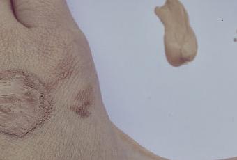 En mi caso, elegí una base de Avon muy oscura para mi. Puse un poco en mi mano para que vean la diferencia de tono.