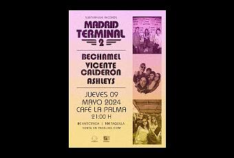 Dentro de la propuesta de Madrid Terminal 2 encontraremos a tres propuestas jóvenes en el Café la Palma. Bechamel, Vicente Calderón y Ashleys son las bandas que se suben al escenario del Café la Palma dentro del concepto Madrid Terminal 2.