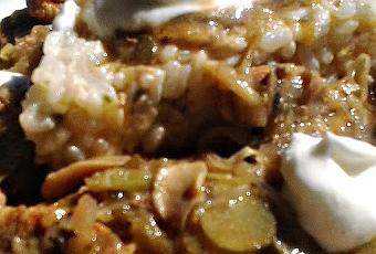 Lo basico es carne , setas , nata agria , pepinos encurtidos y arroz ...después podemos añadir lo que mas nos guste para darle nuestro toque ......