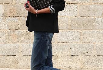 El look de hoy lo cierto es que es no tiene mucho misterio vaqueros boyfriend + tacones + blazer + clutch y todo jugando con el más que famoso Black & White, pero aun así me parece un look super acertado, sencillo y perfecto para ir arreglada sin olvidarnos de la comodidad. El blazer fue de las últimas compras rebajiles y aunque en principio el forro al estilo Beetlejuice me tiró para atrás, una vez que me lo probé tranquilamente en casa me gustó bastante, aunque no descarto cambiárselo en la doblez de las mangas de aquí a unas semanas... ¿Alguien se acuerda de este clutch con tachuelas? Fue uno de los artículos estrella de Zara hace un par de temporadas, después incluso lo sacaron en color crema más bonito aún. El anillo fue regalo de unas compañeras de trabajo hace ya unos cuantos años y lo guardo con mucho cariño además de que me encanta y hoy me venía que ni pintado con el forro ^_^