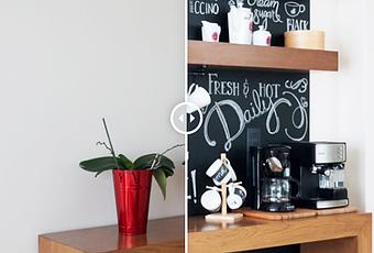 De nuevo os traemos al blog el antes y después de un espacio pequeño, residual y menos "importante" que el resto de las estancias de una casa. Algo que nos parece muy interesante y que aporta muchas ideas para aprovechar este tipo de rincones que, al final, resultan súper prácticos. Primero fue el antes y después del cuarto de lavadero y plancha (clic aquí), y luego el cambio de look de un recibidor muy sencillo pero lleno de estilo (clic aquí). Y hoy le toca el turno a este coffe bar casero que gracias al buen gusto y estilazo de nuestra amiga y compañera de profesión Rocío, del blog Casa Haus, se ha convertido en un rincón súper agradable, con personalidad y con sello propio. Partiendo de una pared blanca, que sólo tenía una mesa auxiliar tipo barra, ha logrado darle un aire completamente distinto utilizando pintura de pizarra (¡gran aliada de las transformaciones rápidas!), unas baldas a juego con la barra, una barra para colgar las tazas, unos taburetes, complementos decorativos y una gran dosis de imaginación en los dibujos de la pizarra. Nos parece una idea totalmente aprovechable para zonas de café en oficinas, estudios y, por supuesto, para comercios y cafeterías. ¿Lo vemos?