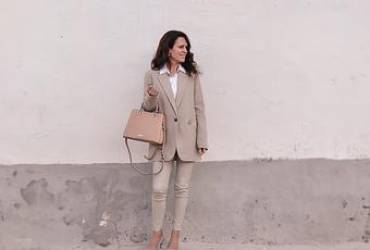 Hoy os enseño este look de colores neutros formando una paleta casi monocromática y es que no se a vosotras pero cada vez me apetecen más estos colores, aunque reconozco que paso del color nude al color negro en un plis plas...La combinación de blazer oversize con leggins de polipiel y camisa satinada me gusta mucho, hacen del look un estilo clásico pero actualizado por el corte de la blazer, los complementos como son el bolso y los zapatos en la misma gama y de pendientes, qué debo de decir, qué casi no me los quito esta combinación de perla con metal.Os dejo con las fotos: