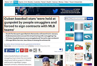 Triste realidad para jugadores cubanos de pelota, cuyo deseo legítimo es participar con sus grandes condiciones deportivas, en el mejor beisbol del mundo, algo que por ser cubanos se les niega si no renuncian a su país. Eso también es bloqueo y hostilidad hacia Cuba. El último suceso conocido es dramático: pagaron a una red de contrabando y fueron llevados a punta de pistola a México, además de que les obligaron a firmar contratos de la Liga Mayor de Béisbol, según los fiscales federales, de lo cual dio cuenta el diario Daily Mail con un reportaje de AP y publicado por Cubadebate.