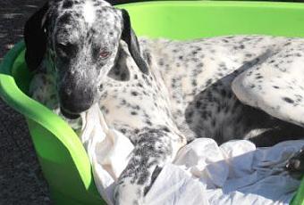 Bella es una cruce de dálmata, de 1.5 años, sacada de un criadero de una nave de Alicante,