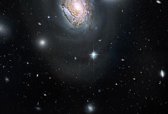 En esta imagen podemos ver a la galaxia NGC 4911 perteneciente al Cúmulo Coma, la cual se nos muestra en todo su esplendor, podemos distinguir sus brazos espirales, podemos distinguir partes algo oscuras en los brazos gracias, eso es debido al polvo interestelar de NGC 4911, también podemos ver una especies de burbujas de color rosado, son nubes de hidrógeno que nos indican que se está produciendo la formación de nuevas estrellas.