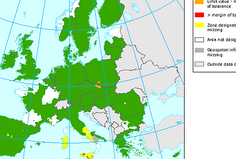 Benceno: Mapa del valor límite anual para protección de la salud (Europa, 2008)[ Fuente: Agencia Europea de Medio Ambiente ]