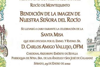 La Hermandad Ntra. Sra. del Rocío de Montequinto hace pública la celebración de Bendición de la Réplica a tamaño natural de Ntra. Sra. del Rocío el próximo día 29 de Enero de 2022 en nuestra sede canónica “Parroquia de Ntra. Sra. de los Ángeles y San José de Calasanz”, actuando como Madrina la Policía Local ...