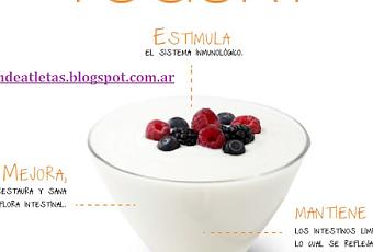 • El principal beneficio de este alimento para los atletas es que es una excelente fuente de proteínas. Algunos productos contienen más de estos aminoácidos como, por ejemplo, el yogurt griego. Esta clase puede tener hasta más del doble de proteínas que los tradicionales. En su variedad llamada yogurt griego es más grueso y espeso, y tiene unos 20 gramos de proteínas por porción, mientras que el tradicional puede tener de 8 a 10 gramos.