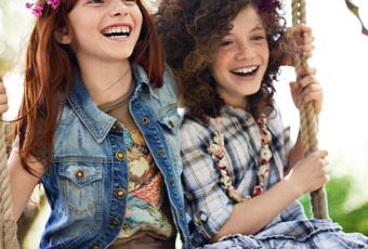 Para las chicas, los grandes estampados florales, casi exagerados, se encuentran tanto en una preciosa falda con un pequeño detalle en el ribete como en una selección de vestidos de tirantes con cintura imperio. El estilo se caracteriza por la naturalidad y la despreocupación, y ofrece el look perfecto para la diversión al aire libre.