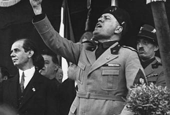 Benito Mussolini (1883-1945) fue el líder del partido fascista, que dominó Italia entre 1922 y 1943. En su visión totalitaria, antirracional e idealista, el fascismo ensalzó la fuerza, la violencia y el nacionalismo en detrimento de la democracia, el liberalismo y la lucha de clases entre trabajadores y capitalistas.