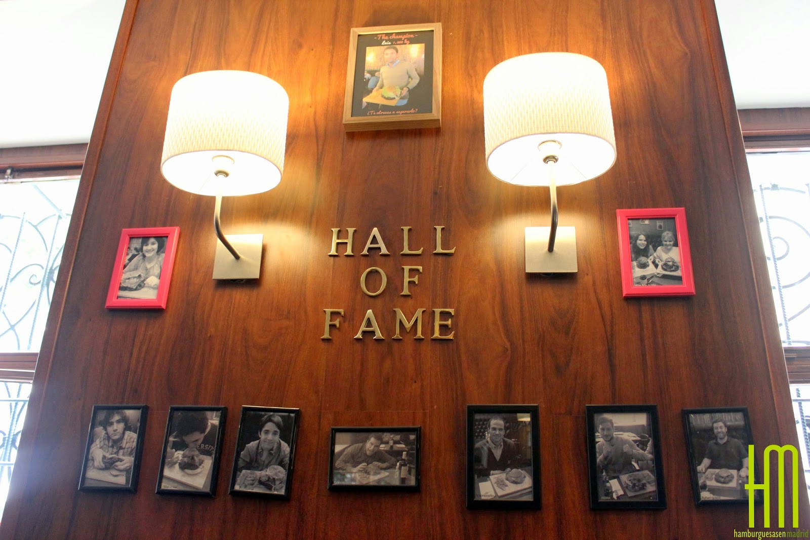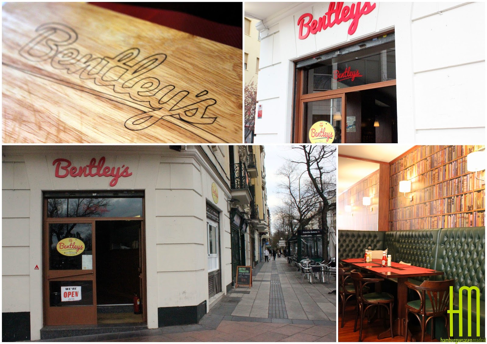 Y allí que nos plantamos, cuando la primera impresión no es del todo mala. La cocina está a la vista, nada más entrar a un local rectangular en el que las mesas están al fondo. El olor de la parrilla nos ilusiona en un primer momento, si bien es verdad que, si llevas un rato, te cansas y pasa a ser un olor a quemado de la madera y acaba convirtiéndose en un punto que juega en su contra.Para qué engañarnos, la publicidad ha jugado en favor de Bentley's y a la hora de comer, que es cuando nosotros fuimos, está más que lleno, lo que hace que, para aprovechar bien este factor, las mesas estén demasiado juntas y puedas entender bien las conversaciones de las mesas de alrededor mejor, incluso, que la de la tuya propia. Aparte de eso, el local se nos presenta como una especie de salón/biblioteca, con un papel pintado que representa una estantería llena de libros y maderas en las paredes. Es aquí donde se puede ver el Hall of Fame, con las fotos de los "ganadores" del reto que aquí se propone: acabar con una hamburguesa de 1 Kg., cosa que, como luego os explicaremos, no es nada difícil.