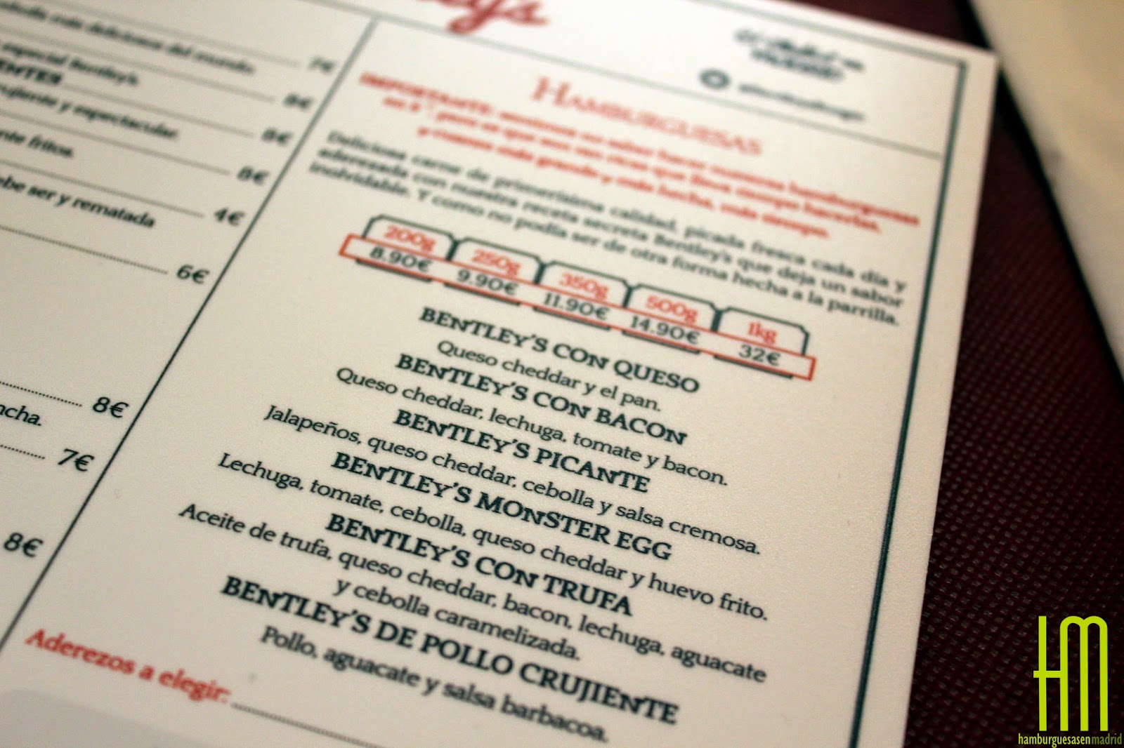 Detalle de la carta. Las burgers.