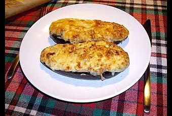 Abrir las berengenas por la mitad y marcarlas con un cuchillo por la parte de la pulpa, ponerlas en el microondas a potencia máxima durante 7 u 8 minutos, hasta que la pulpa de las berengenas esté blanda y se puedan vaciar.En una sartén sofreir toda la carne salpimentada, añadir los trocitos de jamón y la cebolla rallada, después poner toda la pulpa de las berengenas y seguir sofriendo para integrarla en el relleno.Cuando todo esté bien cocido nos dispondremos a rellenar las berengenas y las pondremos en una bandeja, que pueda ir al horno, cubriéndolas con la bechamel y el queso rallado, tan solo tapando el relleno, pondremos unos trocitos de mantequilla encima para gratinarlas después.